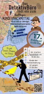 Herzliche Einladung für Faschingsdienstag (17.02.2026) an entdeckerfreudige 5- 12-Jährige mit ihren Eltern, Großeltern oder sonstigen Begleitpersonen in die ELKG Weiterstadt, Zeppelinstr. 5, 64331 Weiterstadt.