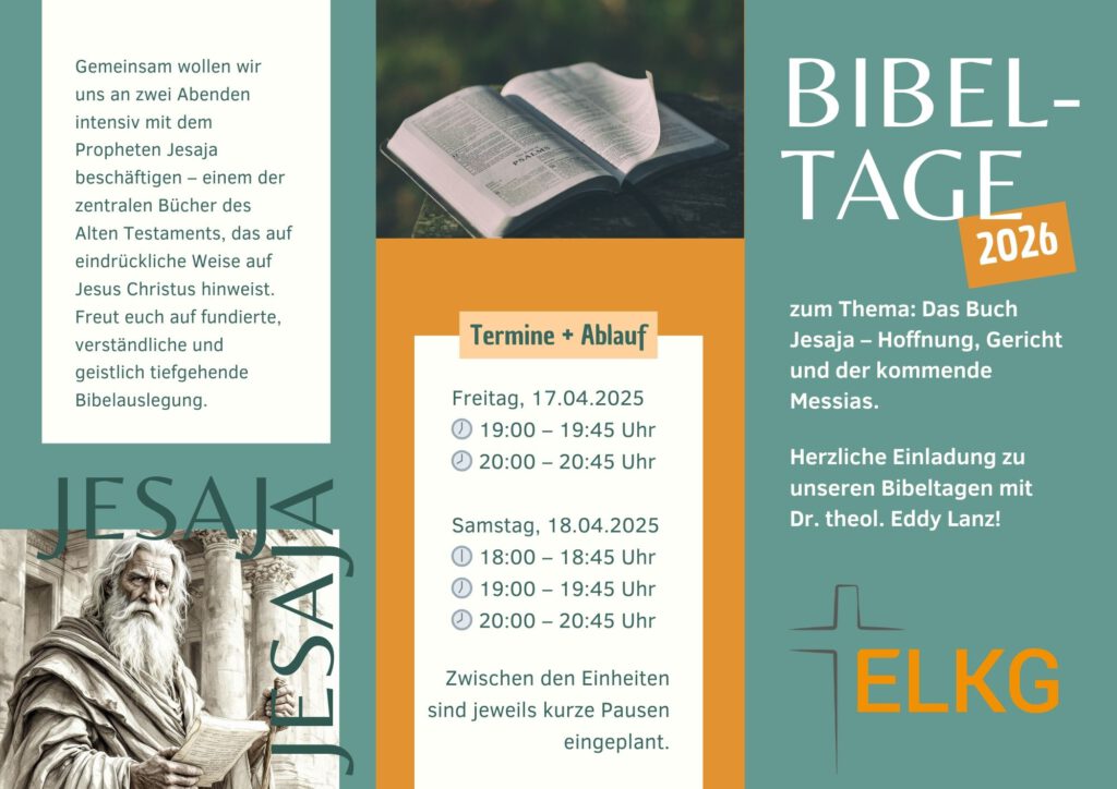Unsere sonstigen Gottesdienste können live auf YouTube oder auf der Homepage elkg.de angesehen sowie zeitgleich über unseren Podcast wie auch über die Tel.-Nr. 06150 – 5054079 angehört werden. Auch die Telefonübertragung beginnt um 10:00 Uhr parallel zum Gottesdienst.
